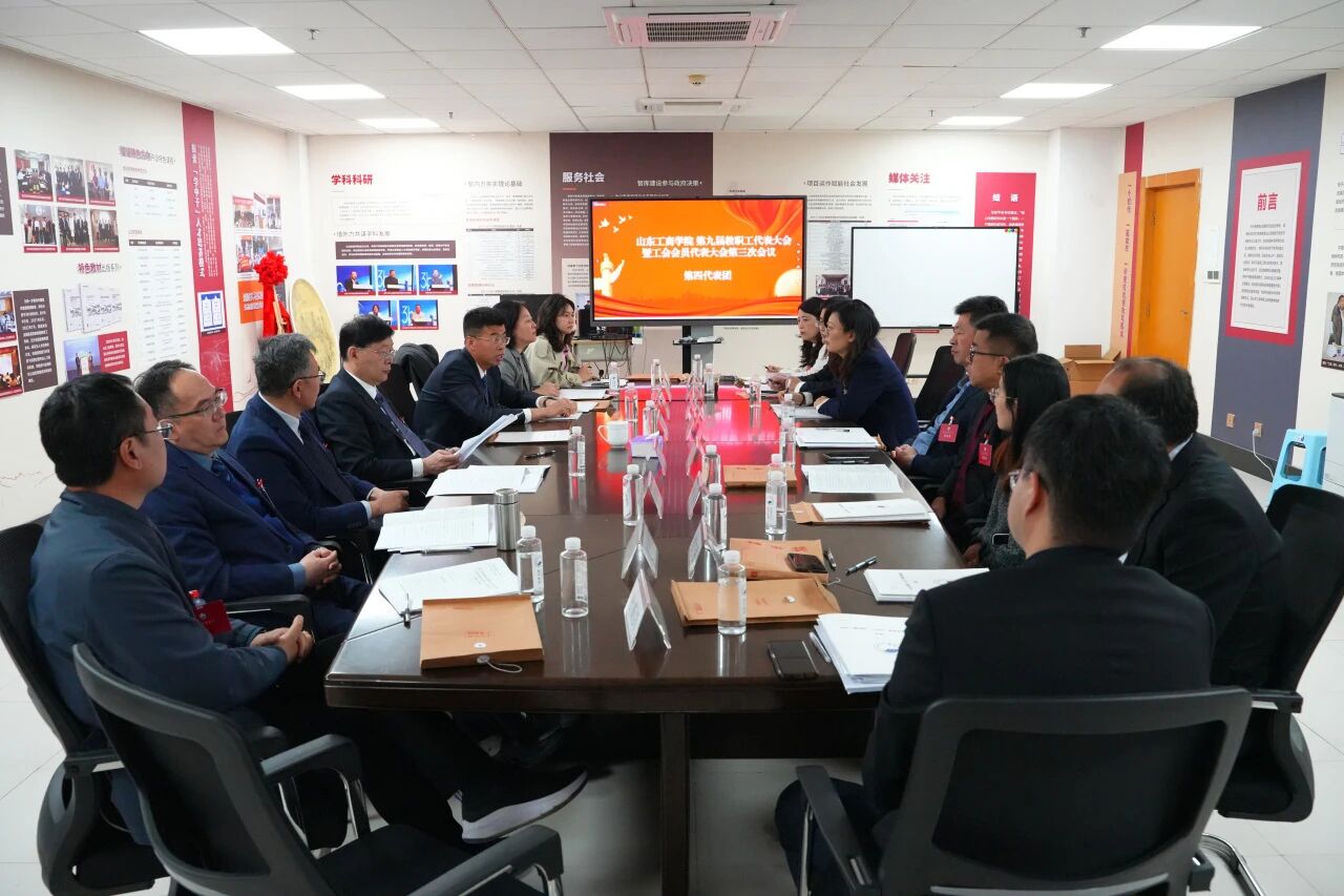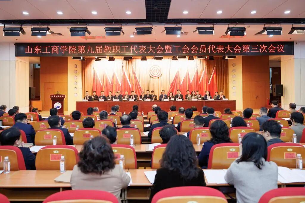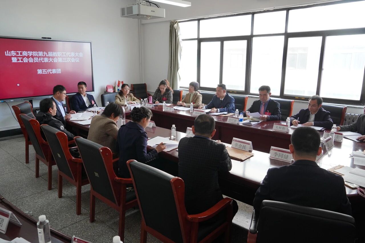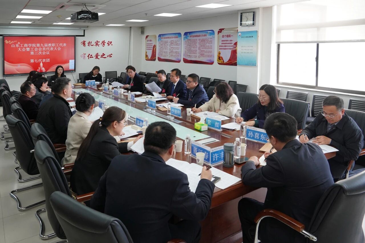 会上,工会主席张京磊作工会工作报告,提案工作委员会主任戴绍栋作提案工作报告,财务处处长陈雪辉作学校财务工作报告。代表们审议了《山东工商学院“十五五”事业发展规划(草案)》和工会经费审查工作报告。