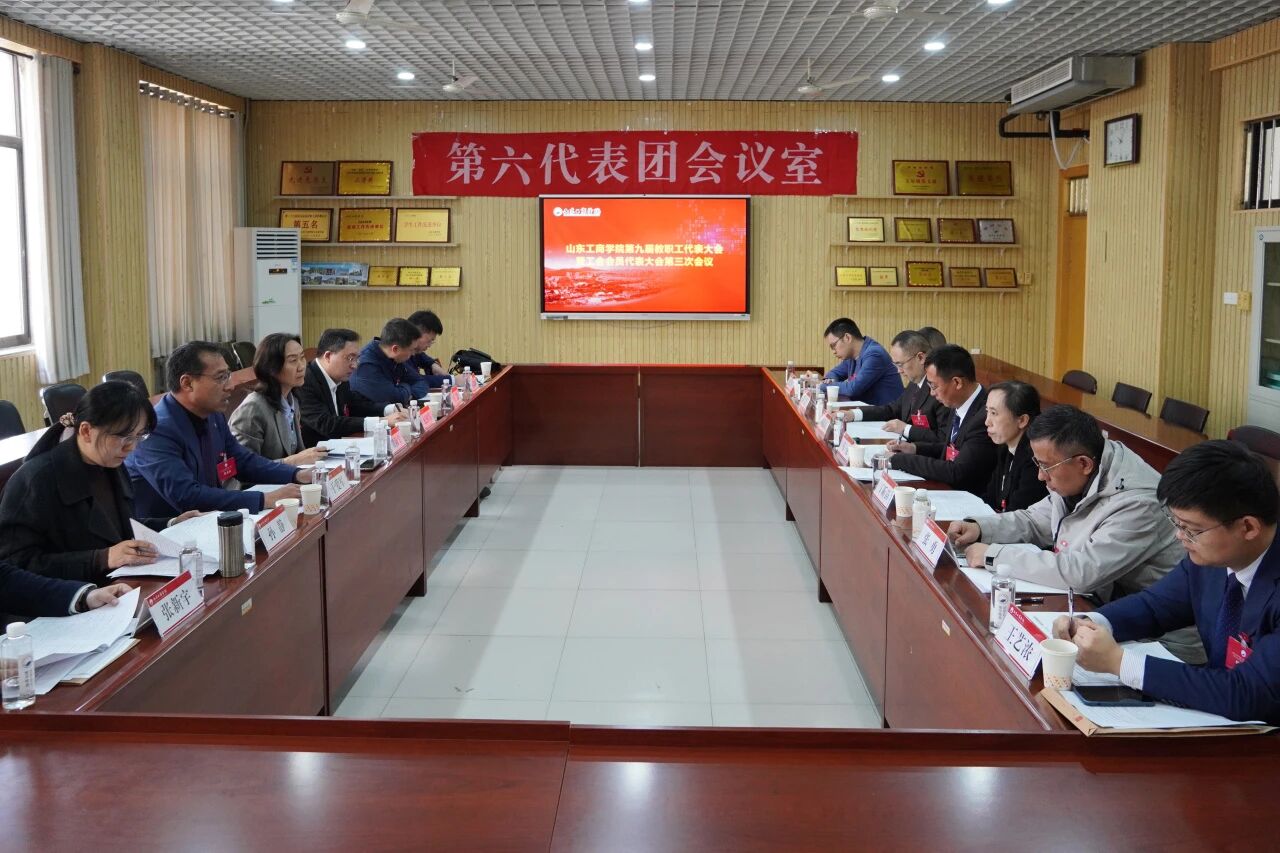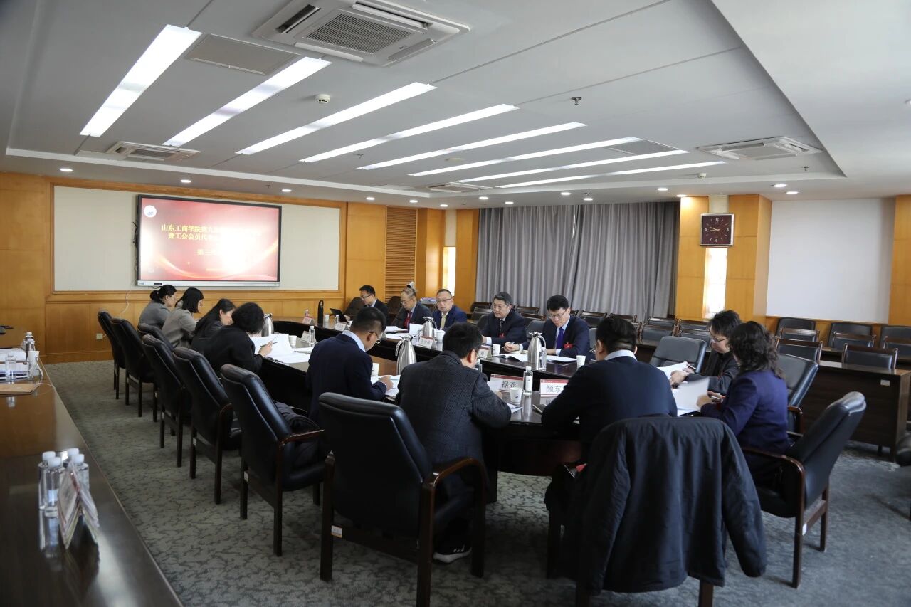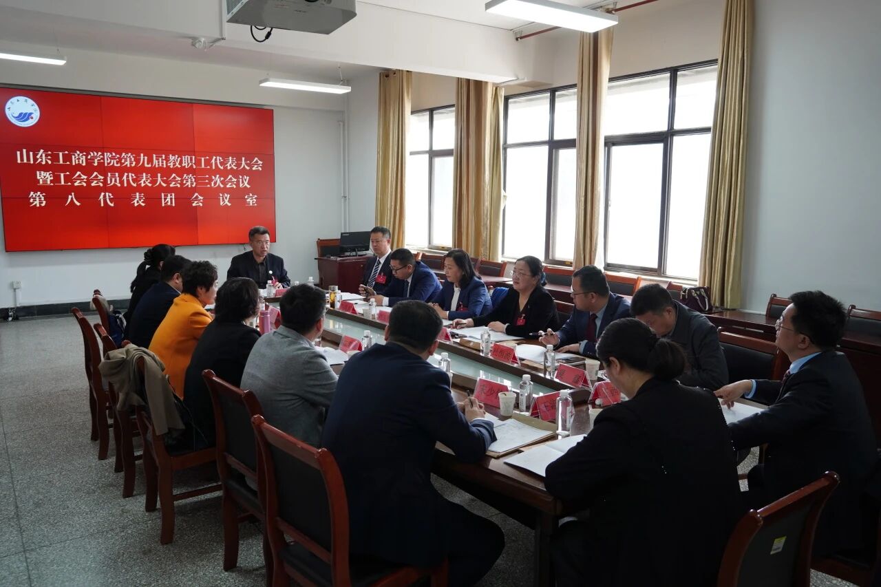 会上,工会主席张京磊作工会工作报告,提案工作委员会主任戴绍栋作提案工作报告,财务处处长陈雪辉作学校财务工作报告。代表们审议了《山东工商学院“十五五”事业发展规划(草案)》和工会经费审查工作报告。