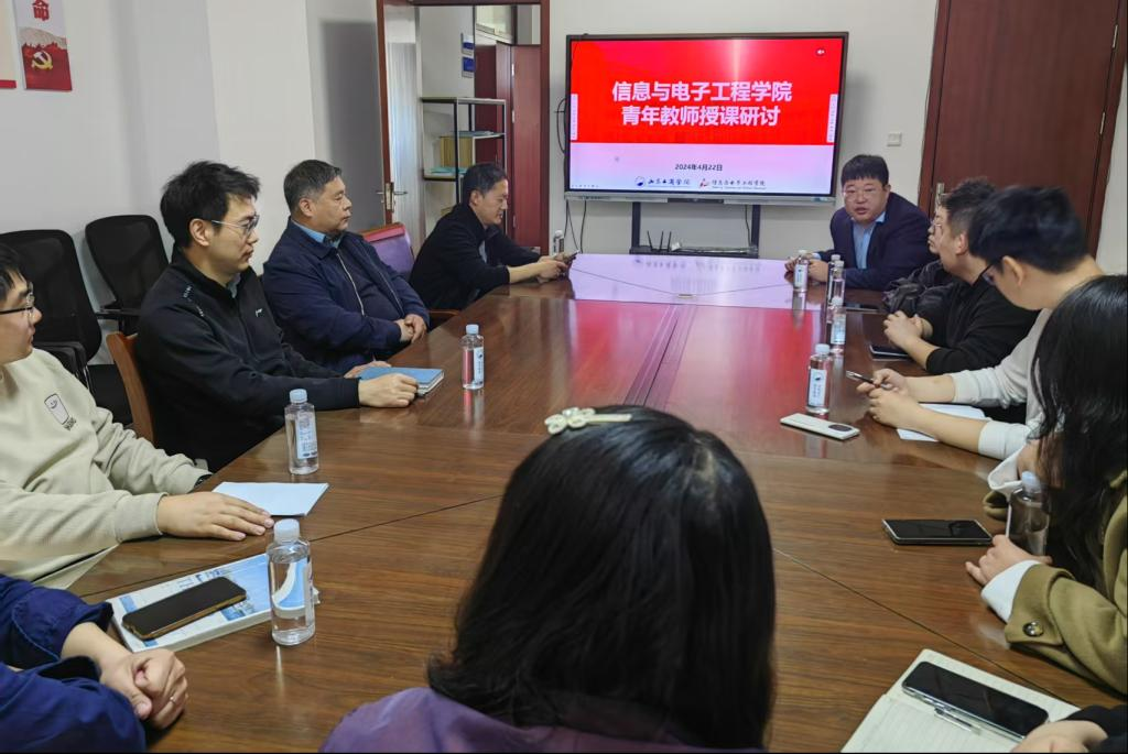 为弘扬践行教育家精神,提升青年教师教学水平,规范课堂教学管理,4月22日上午,信息与电子工程学院组织召开青年教师授课研讨。教学副院长林忠海主持,并邀请校级督导隋金雪、高文两位老师从课程建设、课堂管理和教学规范进行讨论和分享。