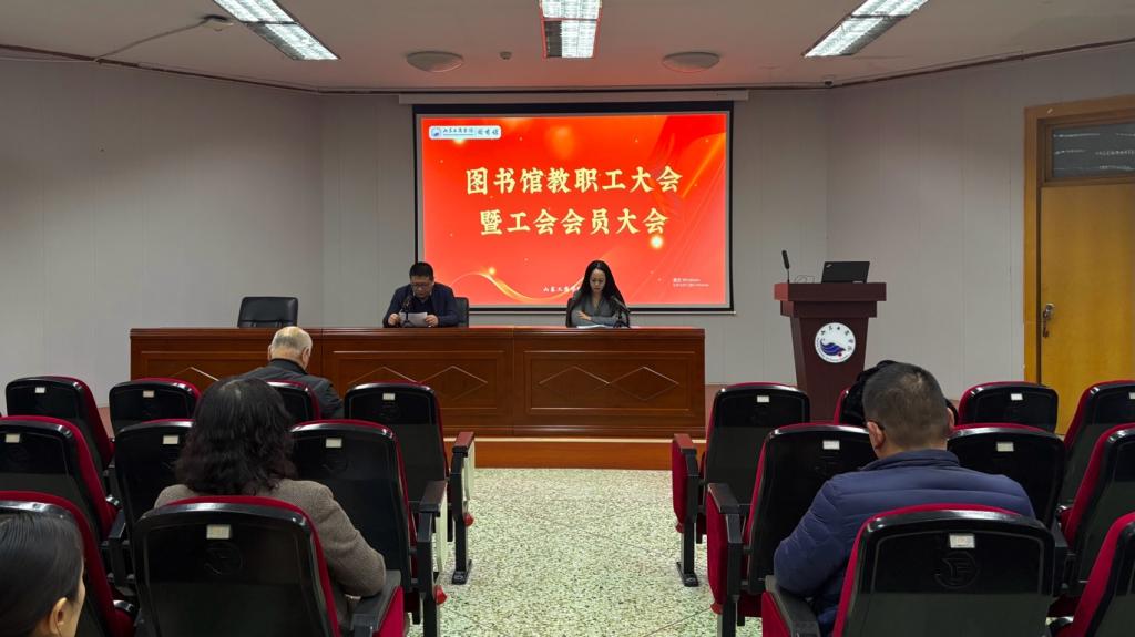 3月17日下午,图书馆在东校中心馆一楼报告厅召开2026年教职工大会暨工会会员大会。会议由图书馆党委书记、馆长左杨主持,围绕2025年度工作总结、经费收支情况、重点任务完成情况等议题展开,图书馆工会全体教职工参加了会议。
